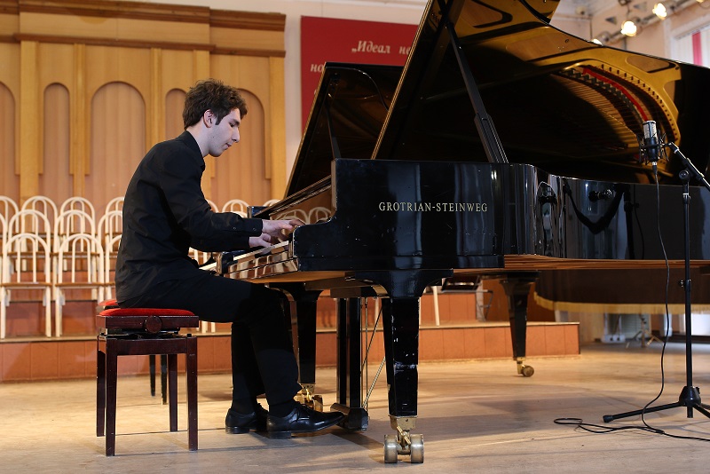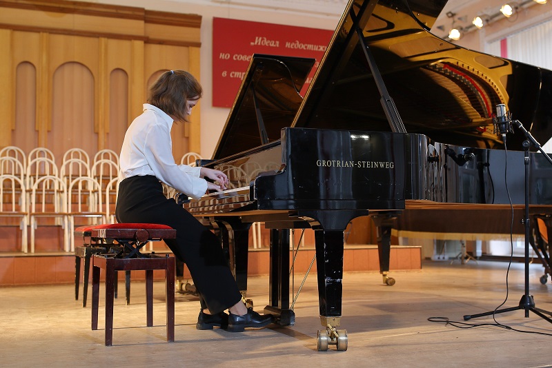 Исполняет фортепианный дуэт: обучающийся сектора производственной практики - Давид Шафеев, студентка 1 курса Ольга Моргунова.