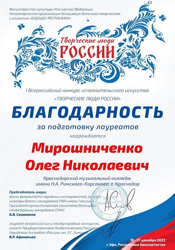 Поздравляем студентку 4 курса специальности «Инструменты народного оркестра» Светлану Наливайко, со званием лауреата I степени в I Всероссийском конкурсе исполнительского искусства "Творческие люди" в номинации «Баян Аккордеон» .