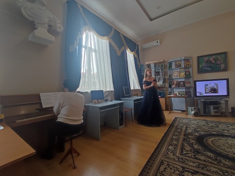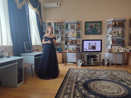 По приглашению сотрудников библиотеки в концертной части приняли участие студентка 2 курса специальности " Вокальное искусство" Таисия Павленко и концертмейстер заслуженный работник культуры Краснодарского края - Галина Василенков. В их исполнение прозвучал романс С.Рахманинова, слова А. Плещеева "Сон".